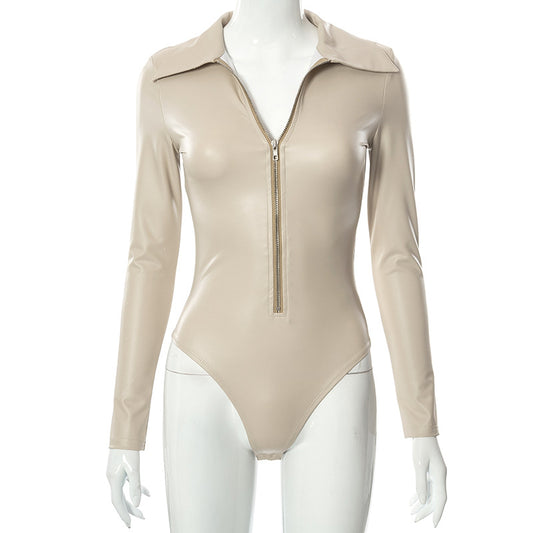 KX High quality long sleeve bodysuits woman leather top bodysuit sexy fashionable women tops