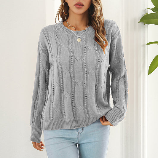Knitted Twist Sweaters for Women Hollow Out Casual Fashion Long Sleeve Pullovers Ladies Solid Loose Clothes Jumper Pullovers
