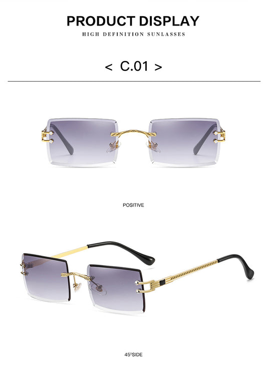 Jiuling eyewear Frameless Trimming Sun glasses Fashion Gradient shades Popular small square rectangle rimless sunglasses