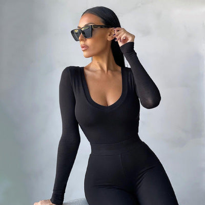 Liu Ming New Arrivals Spring Women Long Sleeve Tops Sexy V Neck Slim Rompers Female Jumpsuit Casual Basic Bodysuit