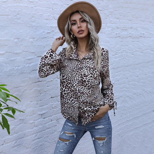 long sleeve black/khaki leopard print shirts for woman shirt top blouse ladies elegant