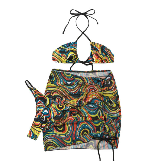 New Arrivals 3 Piece Swimwear Set 2022 Women Sexy Bathing Suit Cover Up Beach Wear Swim Cover Up Skirt Mesh 3 Piece Swimwear