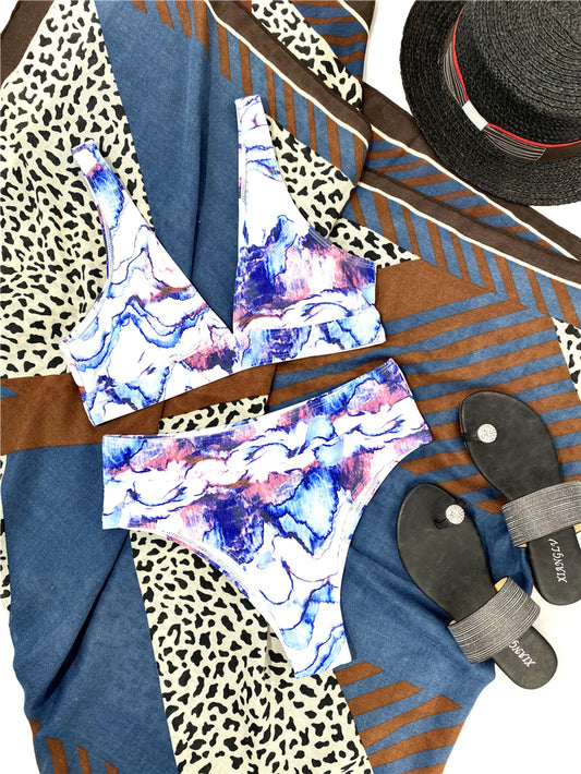New Push Up Padded High Waist Swim Wear Swimsuit Beachwear Tie Dye 2 Piece Bikini Bathing Suits