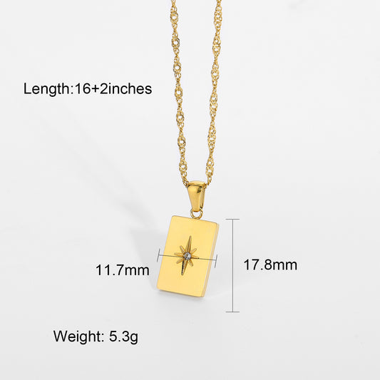 New Style 18K Gold PVD Plated North Star Rectangle Stainless Steel Necklace Tarnish Free Waterproof Gold Jewelry