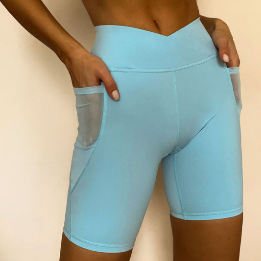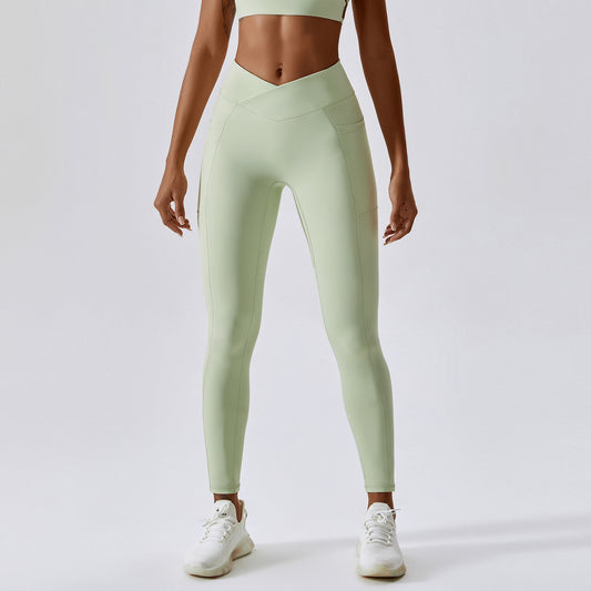 New Women's V Cross Waist Workout Pants High Waisted Scrucnh Butt Yoga Leggings Athletic Compression Tights with Pockets