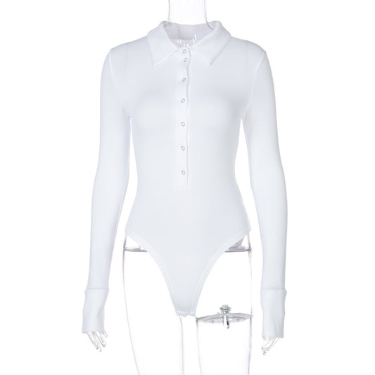 Popular new stalish ladies trendy jumpsuit sexy button lapel long sleeve one piece bodysuit for women