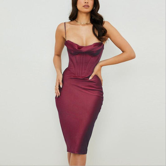 Sexy solid color fashion condole drape slim lady dress