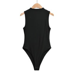Sexy solid color double round neck one-piece vest slim fit sleeveless women bodysuit