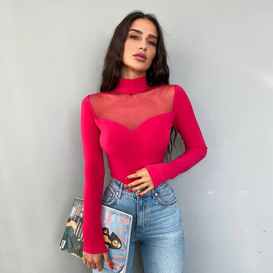 Bomblook Fashion Solid Color Casual Wear Patchwork Long Sleeve Lingerie Bodysuits For Women