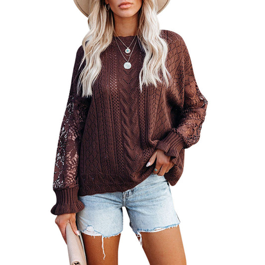 Casual Autumn Winter Women Thick Sweater Pullovers Crochet Lace Pointelle Knit Sweater Female Slim Knit Top Soft Jumper