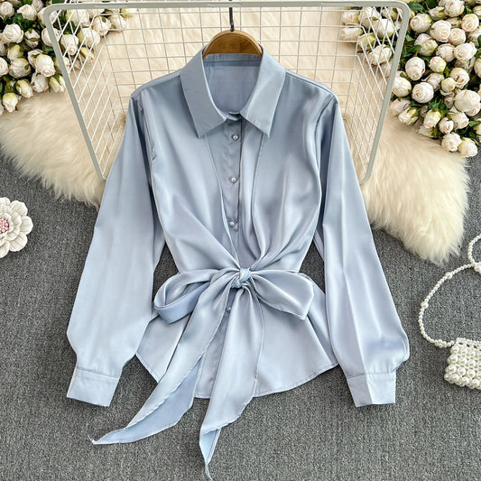 Fashion Elegant Satin Long Sleeve Blouses Women 2023