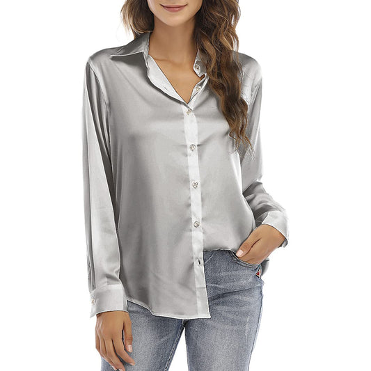 Fashion Satin Silk Shirt Vintage Womens Blouse Ladies Long Sleeve Loose Casual Shirt blusas de mujer